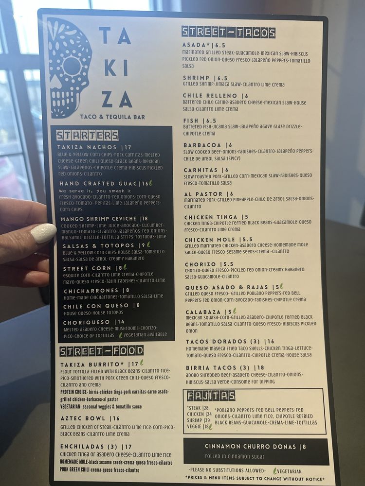 Takiza Taco & Tequila Bar Menu (Update 2025)